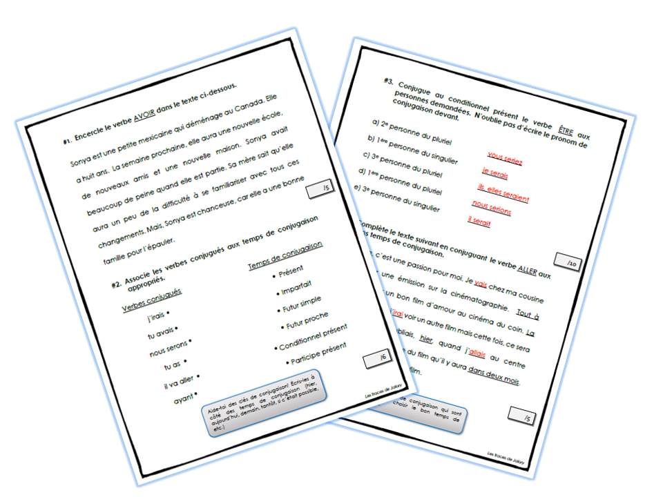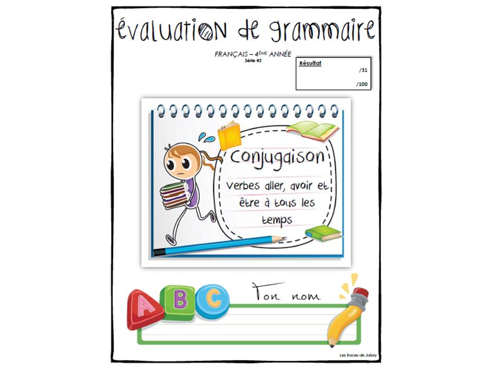 Cette évaluation porte sur la conjugaison des verbes aller, avoir et être au présent, à l’imparfait, au futur simple, au futur proche, au conditionnel et au participe présent. Elle s’adresse aux élèves de 4e année. Un corrigé vous est fourni.