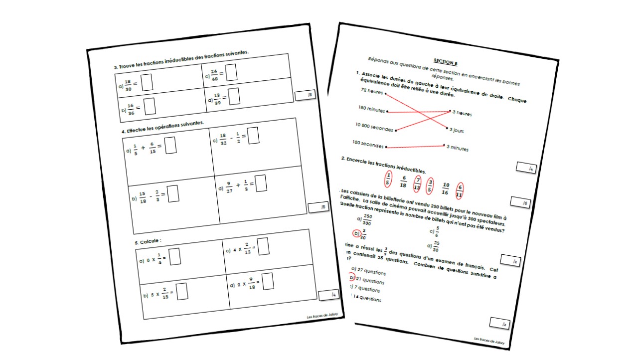 Cette évaluation porte sur les fractions, le temps, les nombres décimaux et l’arrondissement. Elle s’adresse aux élèves de 5ème année. Un corrigé vous est fourni.