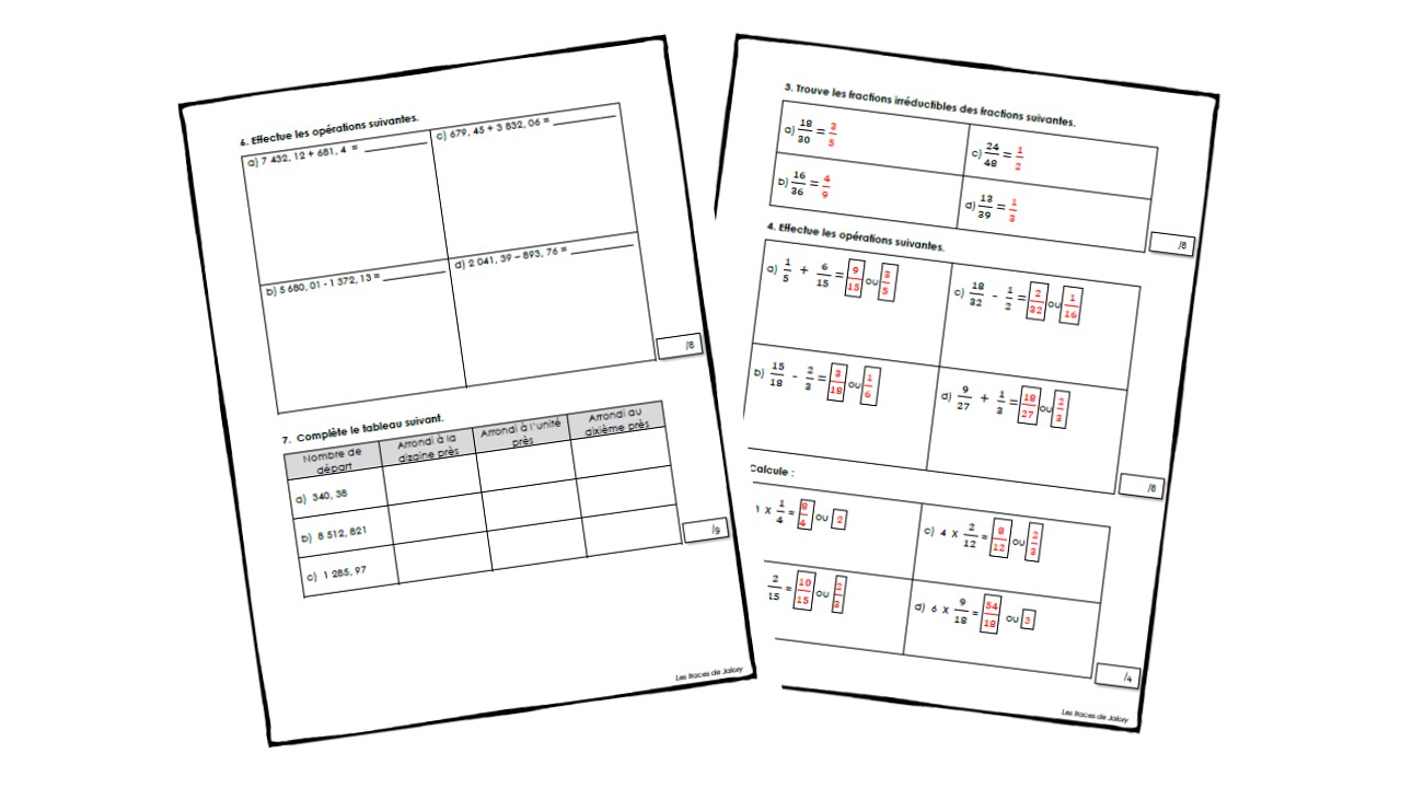 Cette évaluation porte sur les fractions, le temps, les nombres décimaux et l’arrondissement. Elle s’adresse aux élèves de 6ème année. Un corrigé vous est fourni.