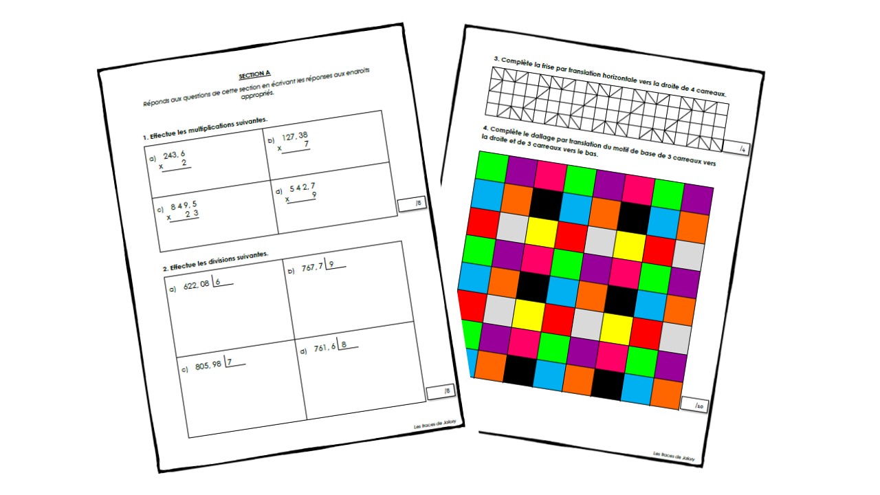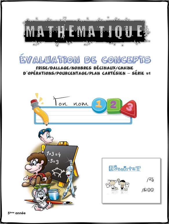 Cette évaluation porte sur la frise, le dallage, les nombres décimaux, le plan cartésien et les chaînes d’opérations. Elle s’adresse aux élèves de 5ème année. Un corrigé vous est fourni.