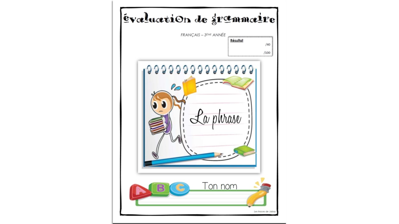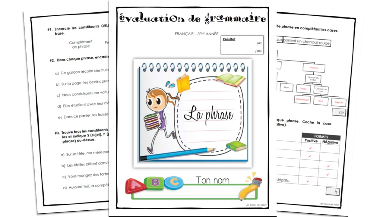 Cette évaluation porte sur les constituants de la phrase, les formes et les types de phrases. Elle s’adresse aux élèves de 3ème année. Un corrigé vous est fourni.