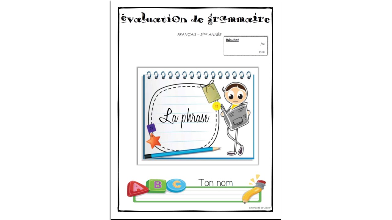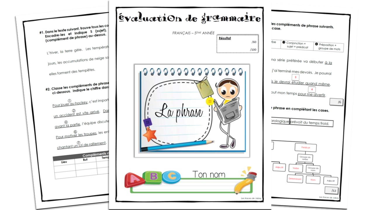 Cette évaluation porte sur les constituants de la phrase, les formes et les types de phrases. Elle s’adresse aux élèves de 5ème année. Un corrigé vous est fourni.
