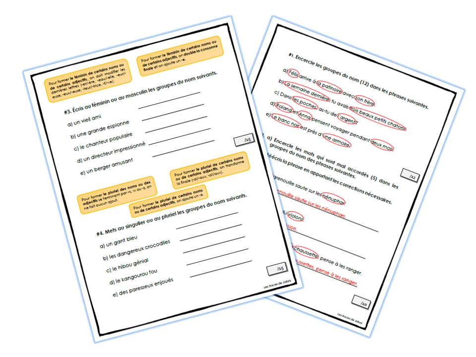 Cette évaluation porte sur la classe de mots, le genre et le nombre, la reconnaissance et l’accord des groupes du nom. Elle s’adresse aux élèves de 3e année. Un corrigé vous est fourni.