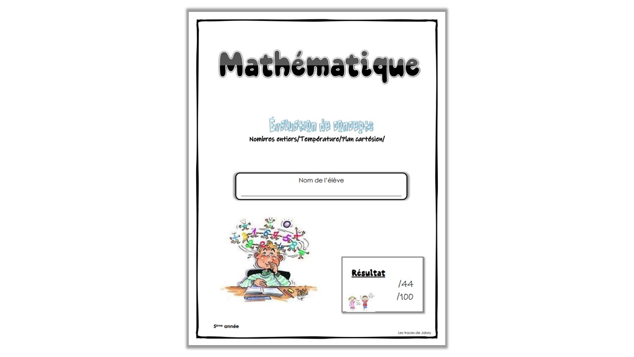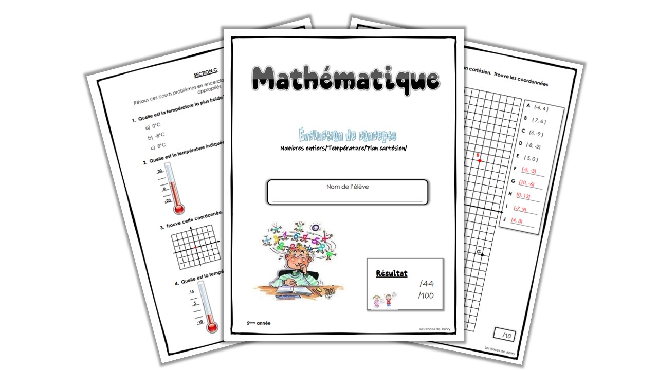 Cette évaluation porte sur les nombres entiers, la température et le pan cartésien. Elle s’adresse aux élèves de 5e année. Un corrigé vous est fourni.