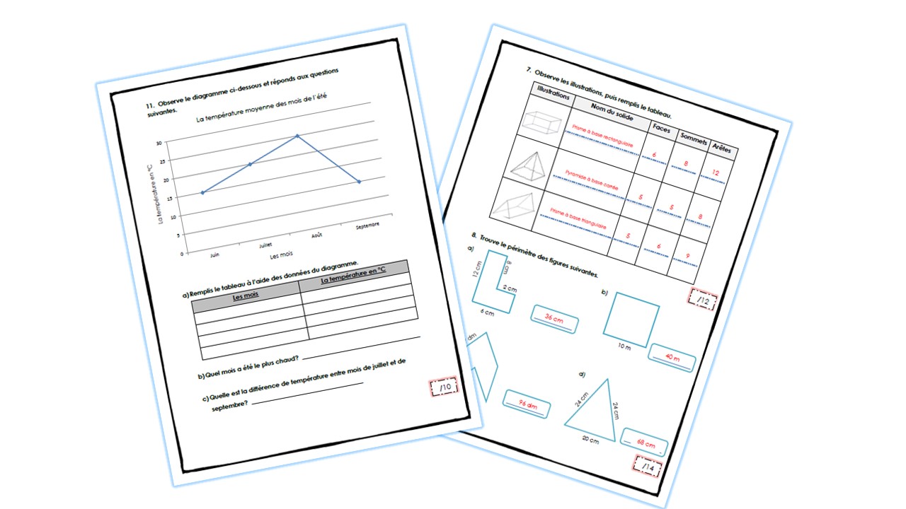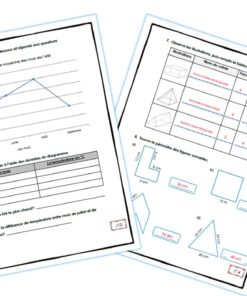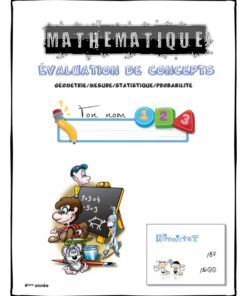 Cette évaluation porte sur les lignes, les angles, la transformation (mesure), les polygones, le plan cartésien, les solides, le périmètre, l’aire, les diagrammes à lignes brisées et les probabilités. Elle s’adresse aux élèves de 4ème année. Un corrigé vous est fourni.