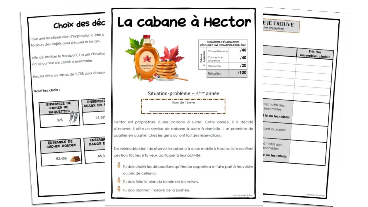 Cette évaluation porte sur l’addition et la soustraction de nombres décimaux, sur les mesures de périmètre et d’aire ainsi que sur la mesure de temps. Elle contient un cahier de l’élève, une mise en situation avec les données du problème, une grille pondérée avec éléments observables et une annexe (corrigé). Elle s’adresse aux élèves de 4ème année.