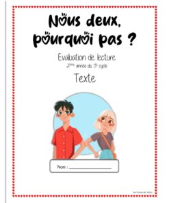 Dans cette évaluation, l’élève aura à lire un texte narratif en lien avec la Saint-Valentin de deux amis qui essayeront de former un couple. Dans le questionnaire, il y aura seize questions portant sur les dimensions de la lecture : compréhension, interprétation, réaction et appréciation. Elle s’adresse aux élèves de 6e année du primaire. Un texte, un questionnaire et un corrigé vous sont fournis.