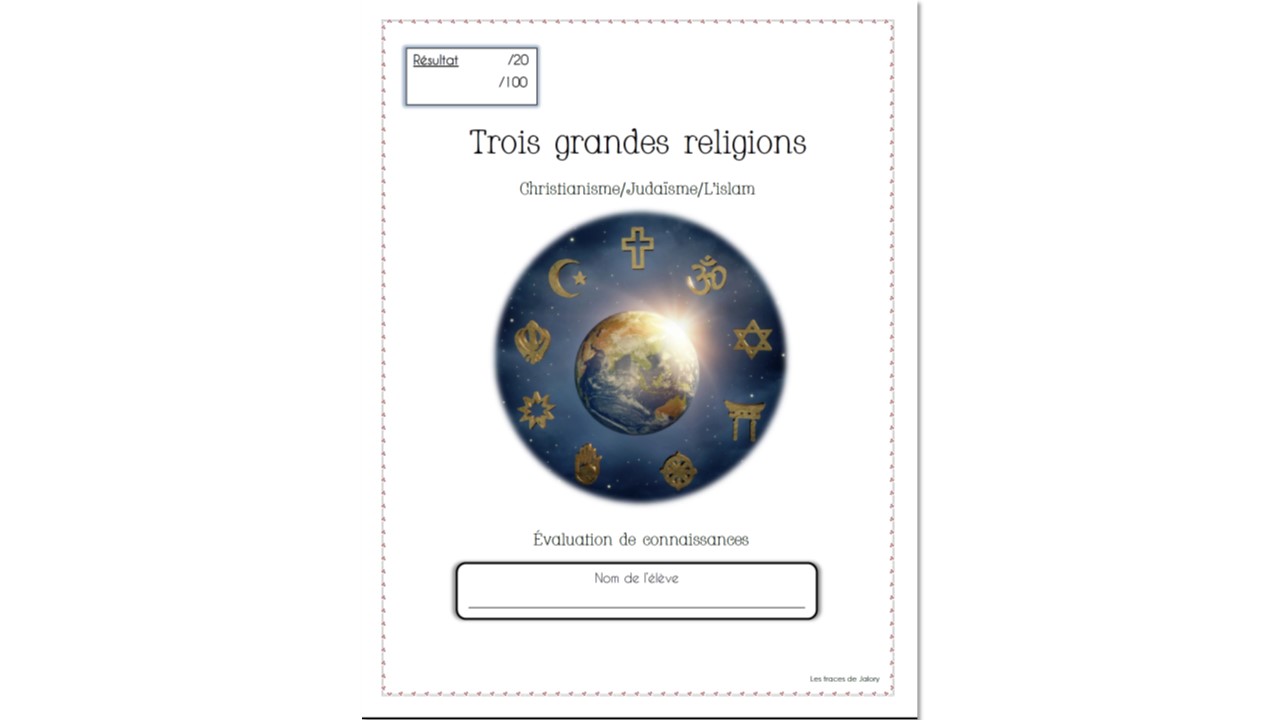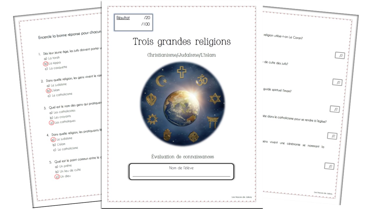 Cette évaluation à choix de réponses porte sur trois grandes religions à l’étude du programme d’éthique et culture religieuse : le christianisme, l’islam et le judaïsme. Un corrigé vous est fourni.